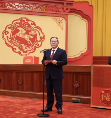 2月14日,中共中央、国务院在北京人民大会堂举行2026年春节团拜会。国务院总理李强主持团拜会。新华社记者黄敬文摄