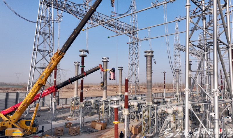 2025年11月21日,工作人员对阿拉尔750千伏变电站进行验收。马元摄