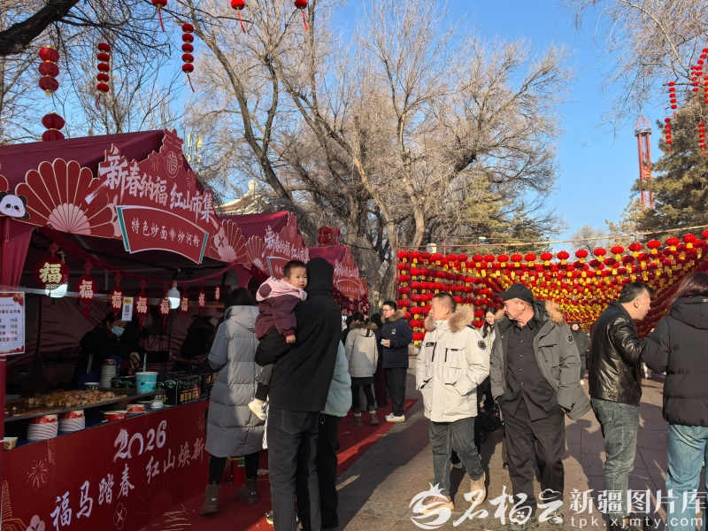 春节期间,乌鲁木齐红山公园开设“新春纳福红山市集”。石榴云/新疆日报记者于江艳摄