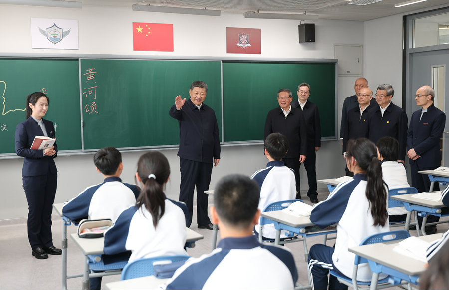 3月23日,中共中央总书记、国家主席、中央军委主席习近平在河北雄安新区考察,并主持召开深入推进雄安新区高质量建设和发展座谈会。这是23日上午,习近平在北京四中雄安校区考察时,同师生亲切交流。新华社记者谢环驰摄