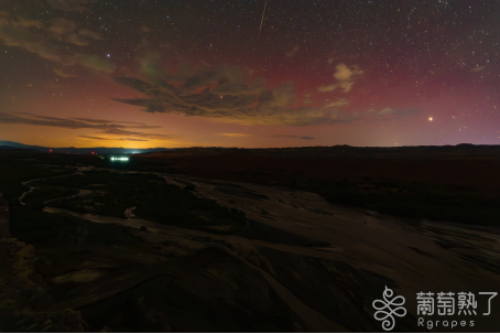 葡萄熟了/吐鲁番市融媒体中心讯(文/图通讯员李靖海胡国凯黄黎)8月12日22时30分左右,托克逊县天山红河谷景区(以下简称红河谷)上空出现了一道罕见的极光,这一自然奇观被当晚正在该地拍摄英仙座流星雨的摄影师意外记录了下来。