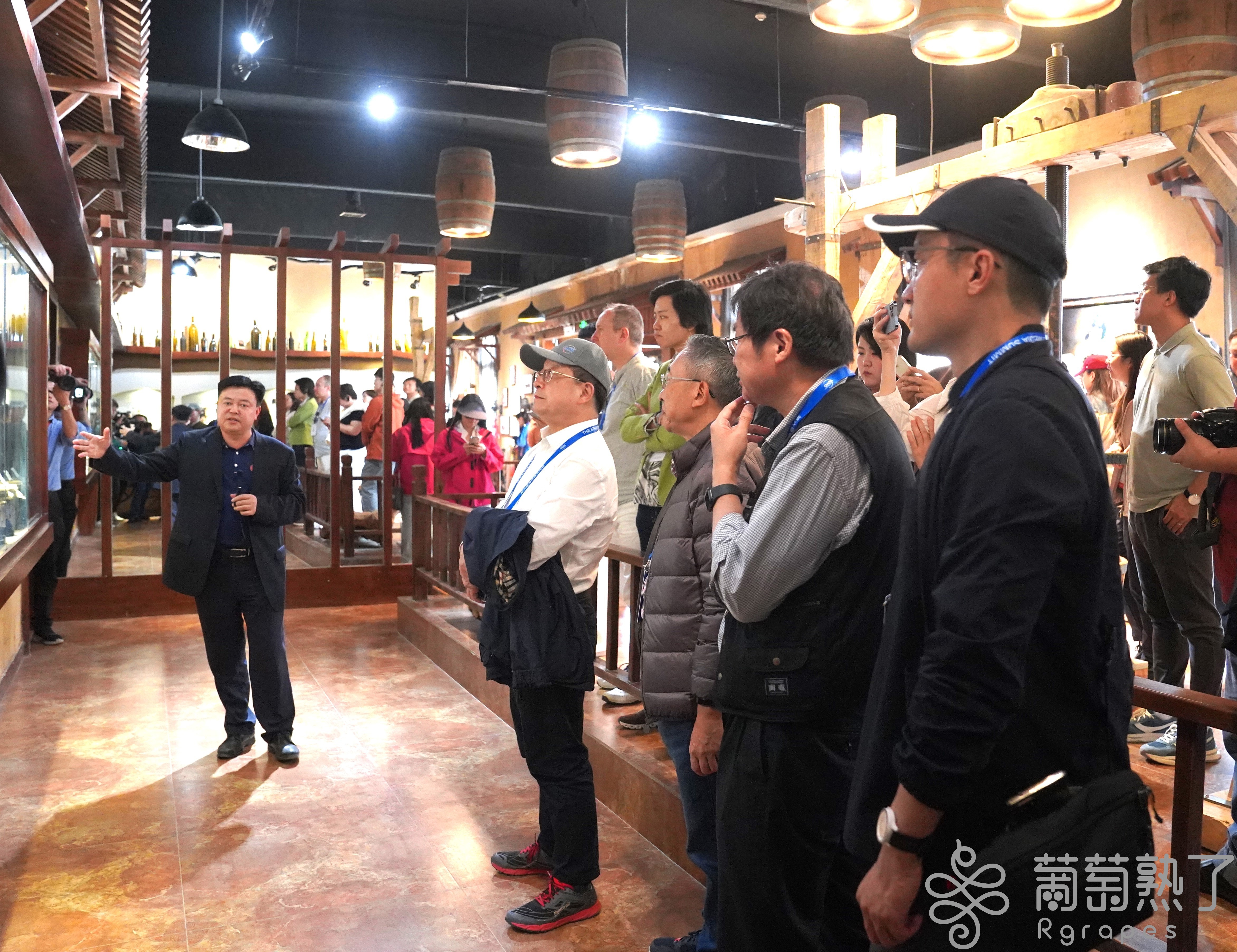 代表们在楼兰酒庄了解吐鲁番葡萄酒产业发展情况。葡萄熟了/吐鲁番市融媒体中心记者加帕尔摄