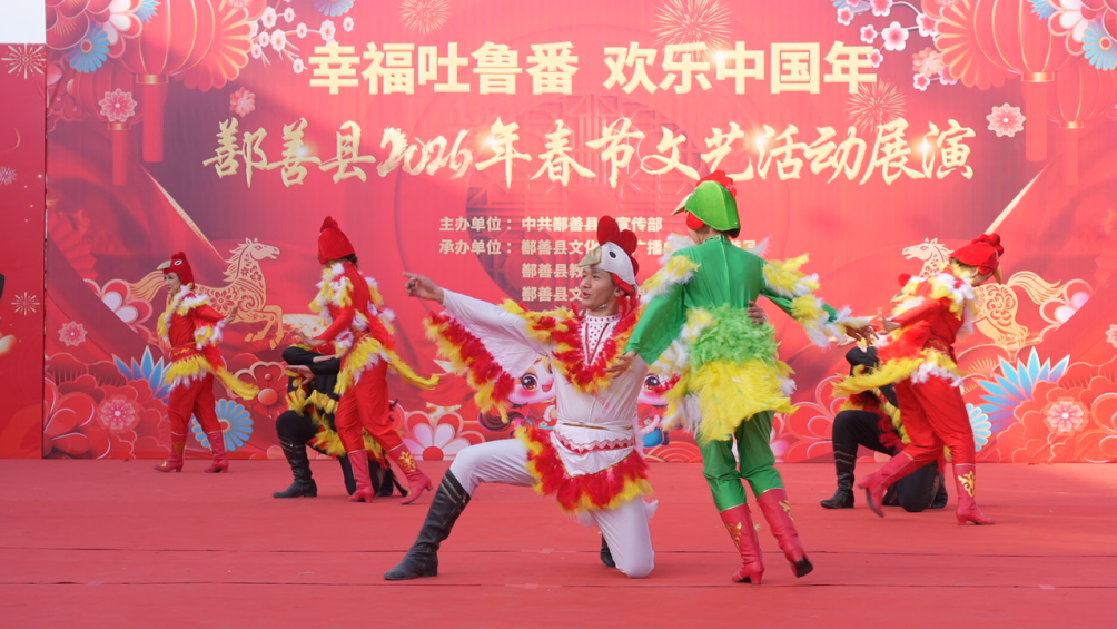 春节临近,年味正浓。连日来,鄯善县举办以“幸福吐鲁番欢乐中国年”为主题的年货大集与2026年春节文艺展演活动,各族群众逛集市、办年货、赏节目,沉浸在热闹喜庆的迎春氛围中。
