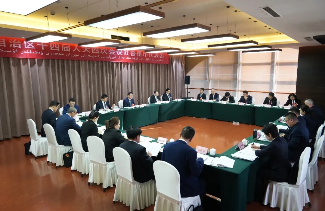 自治区十四届人大四次会议吐鲁番市代表团正在审议政府工作报告。吐鲁番市融媒体中心记者刘字昂摄