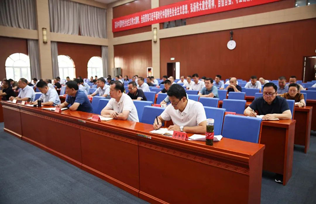 在吐鲁番市2023年上半年经济运行形势分析会上,参会人员正在认真记录。