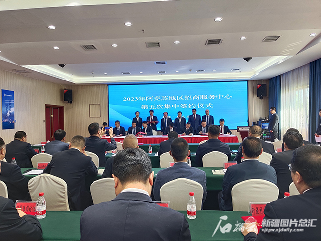 5月29日,2023年阿克苏地区招商服务中心第五次集中签约仪式暨重点信息发布会举行,现场共签约项目12个,投资金额达53.89亿元。陈虹亦摄
