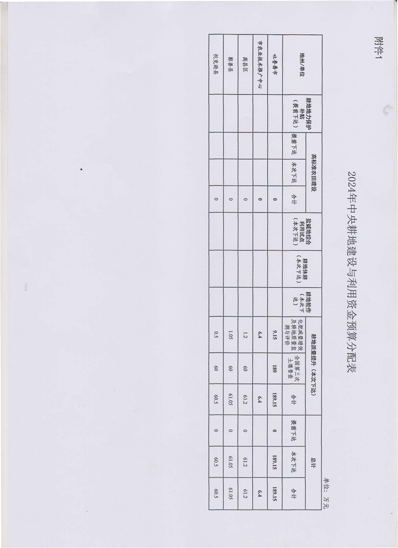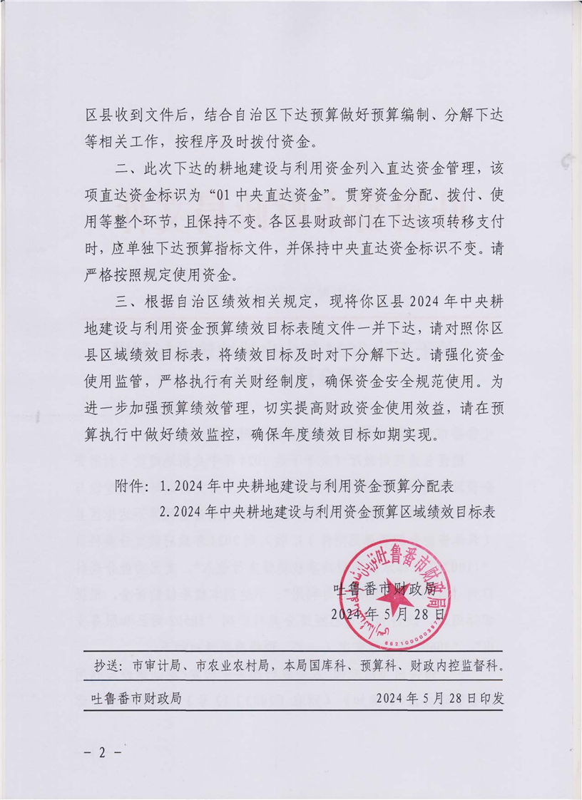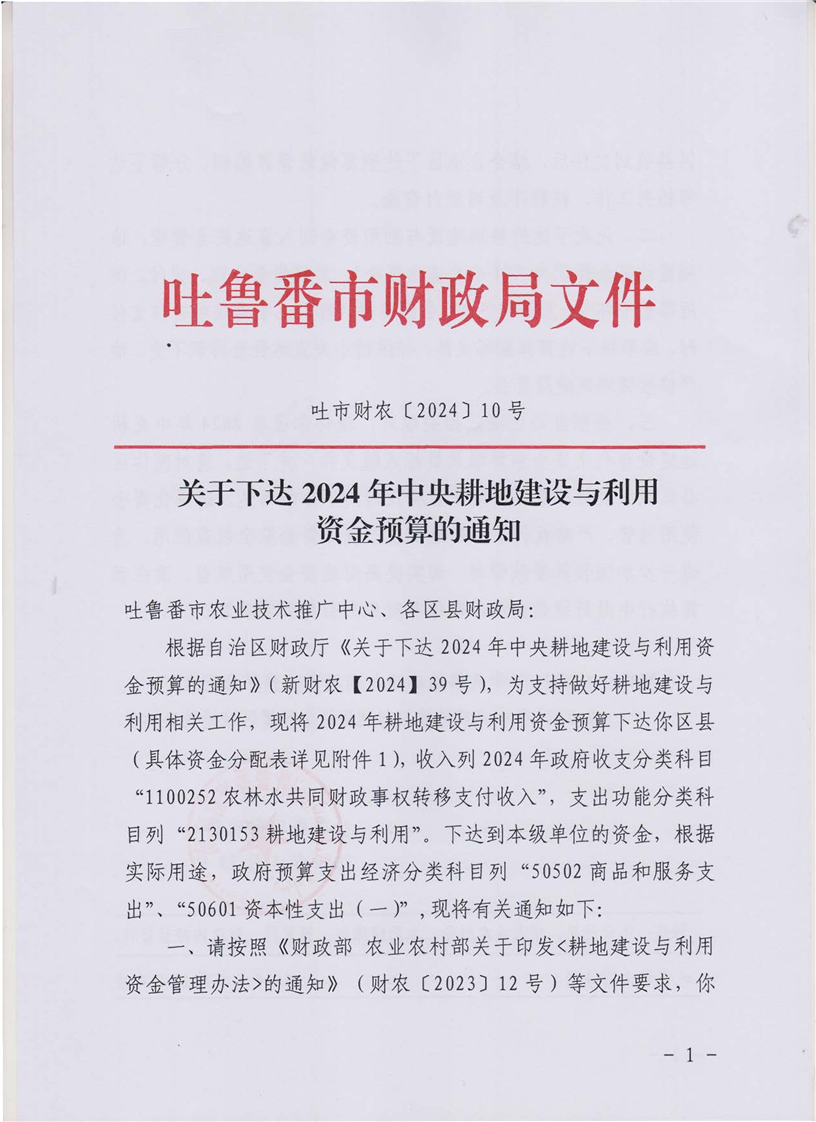 关于下达2024年中央耕地建设与利用资金预算的通知