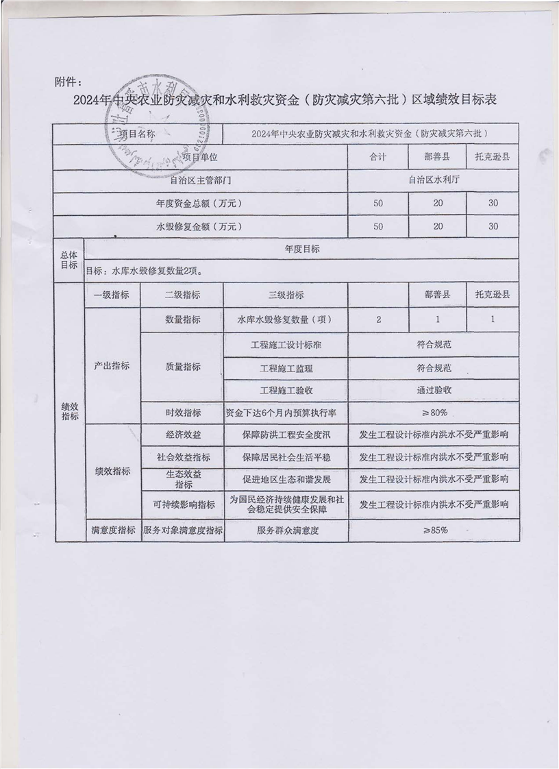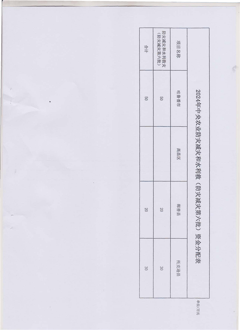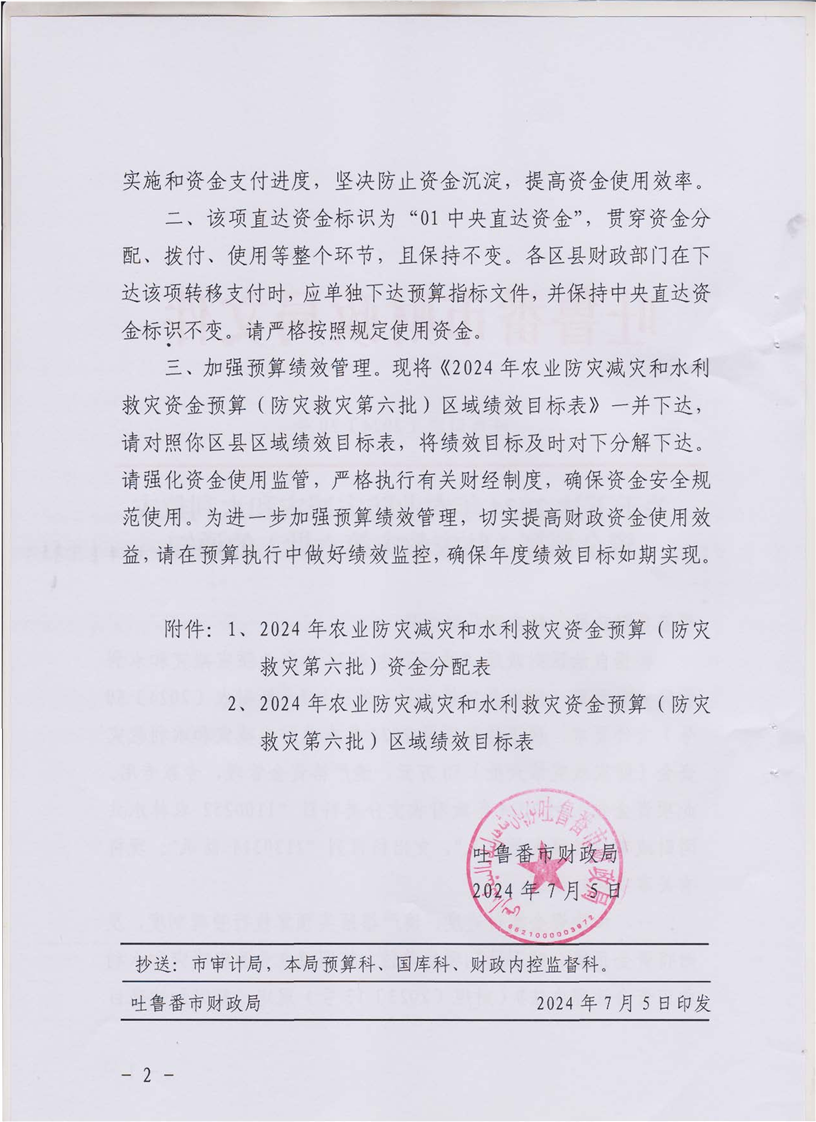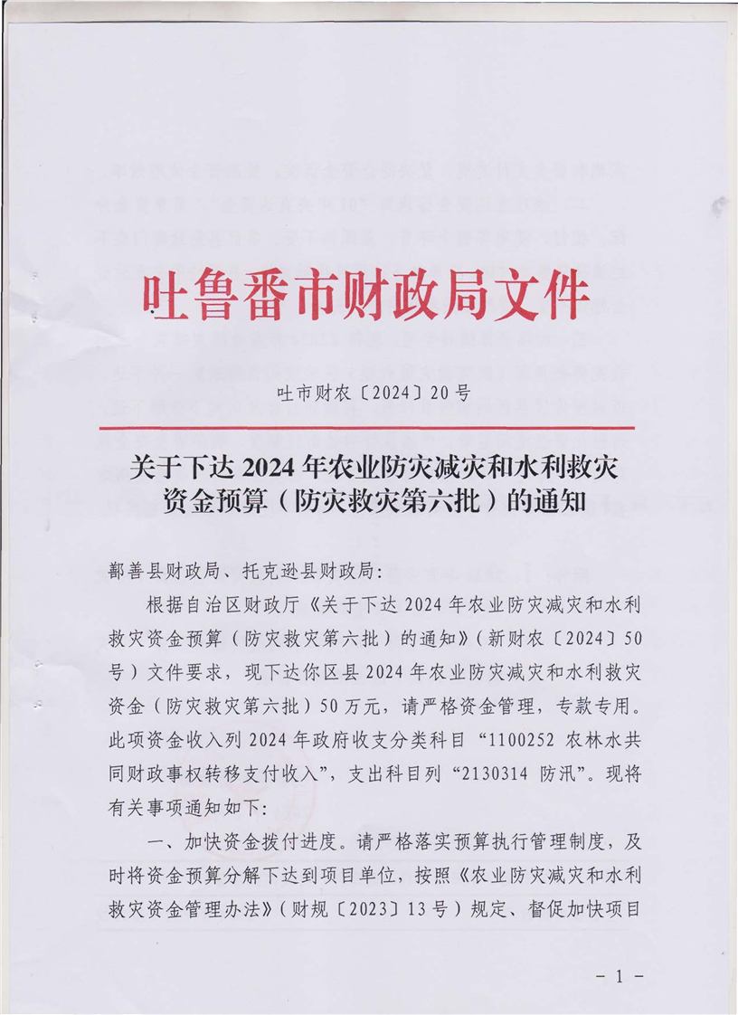 关于下达2024年农业防灾减灾和水利救灾资金预算(防灾救灾第六批)的通知