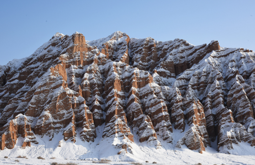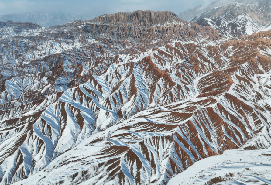 12月25日,在吐鲁番火云谷景区,雪后的火焰山银装素裹,冰与火的奇景蔚为壮观。火焰山横卧于吐鲁番盆地,盛夏酷热似火,冬季披上“银装”的火焰山分外妖娆,景色迷人。吐鲁番市融媒体中心记者刘健刘宇杰摄