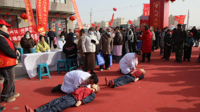 义诊活动现场人气高涨。鄯善县卫生健康委组织县人民医院、县妇幼保健院等医疗机构的专家摆起了“健康年货摊”,在进行义诊的同时传授急救技能、普及传染病防治知识及健康养生知识,向群众送上一份守护健康的特殊新春礼物。