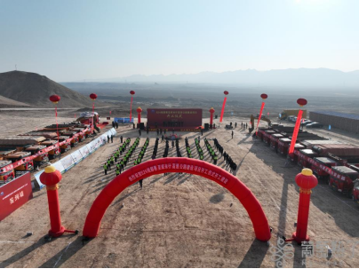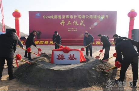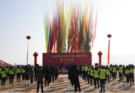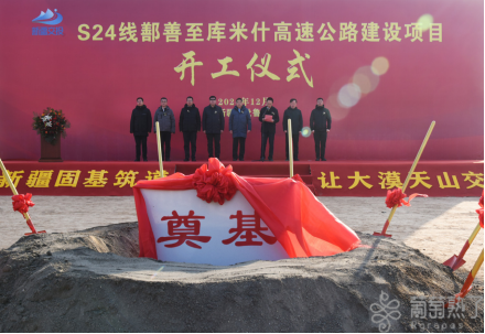 12月16日上午,S24线鄯善至库米什高速公路建设项目开工仪式现场。葡萄熟了/吐鲁番市融媒体中心记者刘健摄