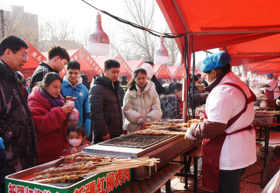 1月31日,“幸福吐鲁番欢乐中国年”2026年货大集火热开市。吐鲁番市高昌区、鄯善县、托克逊县三地联动,共绘一幅热闹欢腾的新春盛景。图为杂技表演。吐鲁番市融媒体中心记者刘健摄