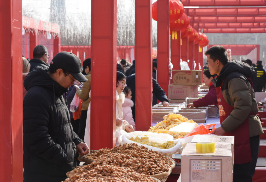 1月31日,“幸福吐鲁番欢乐中国年”2026年货大集火热开市。吐鲁番市高昌区、鄯善县、托克逊县三地联动,共绘一幅热闹欢腾的新春盛景。图为群众购置年货。吐鲁番市融媒体中心记者刘健摄
