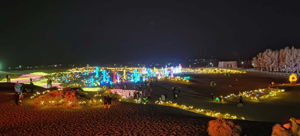 3月20日至21日,以“杏福花开·燃动沙海”为主题的库木塔格沙漠之夜嘉年华在鄯善县库木塔格景区火热举行。本次活动通过沉浸式光影与大漠风情的完美融合,为各地游客呈上一场视听盛宴。