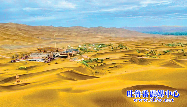 近年来,鄯善县库木塔格沙漠风景区成了四方游客纷纷打卡之地。每当进入库木塔格沙漠风景区,首先扑入眼帘的是碧水一样的长天,朵朵白云之下,黄金在舞蹈。一条条起伏优美的金色海浪让你沉醉;到了夜晚,头上是璀璨的星空,枕边是沙海的呢喃……
