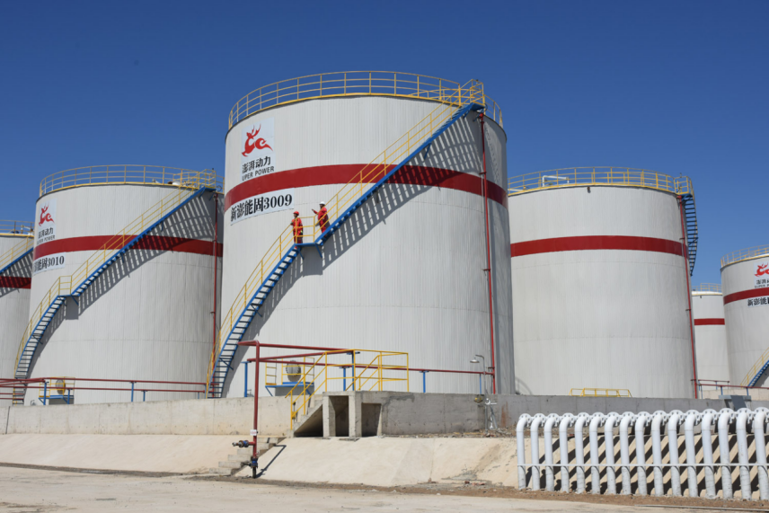 新疆澎湃动力新能源科技有限公司在建的成品油储罐区项目。吐鲁番市融媒体中心记者刘健摄