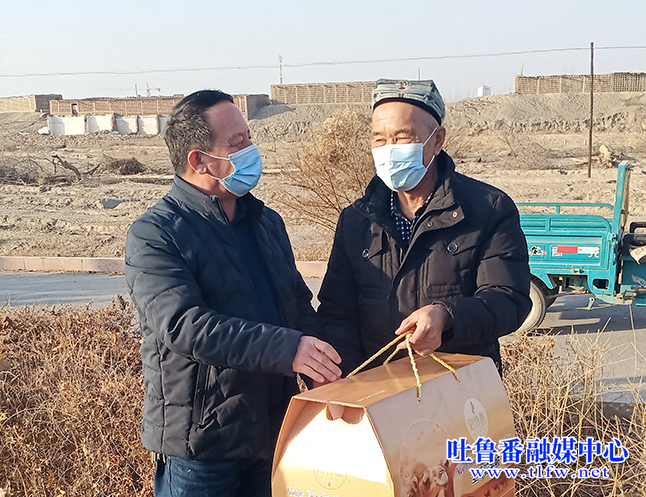 库尔干村“访惠聚”工作队队员与辟展镇干部一起,慰问辖区老干部、老党员、老模范、老军人。吐鲁番融媒中心记者 文志辉 通讯员 吴亚娜 摄