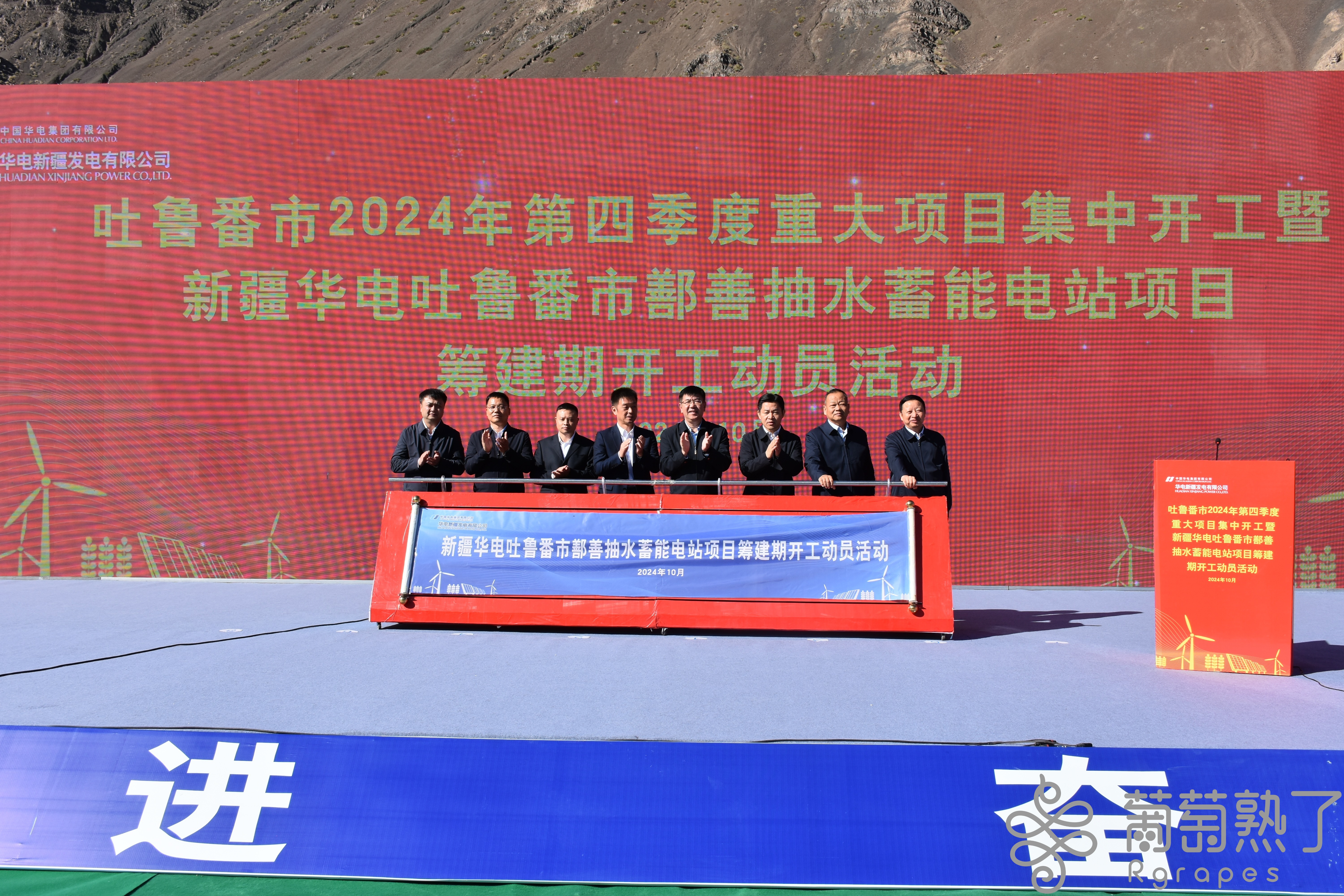 葡萄熟了/吐鲁番市融媒体中心讯(记者李彦强田吉斌朱福平)10月9日上午,吐鲁番市2024年第四季度重大项目集中开工暨新疆华电吐鲁番市鄯善抽水蓄能电站项目筹建期工程开工动员活动在鄯善县举行。市委副书记、市长克衣色尔·克尤木宣布项目开工,市委常委、常务副市长汤红杰主持开工仪式。